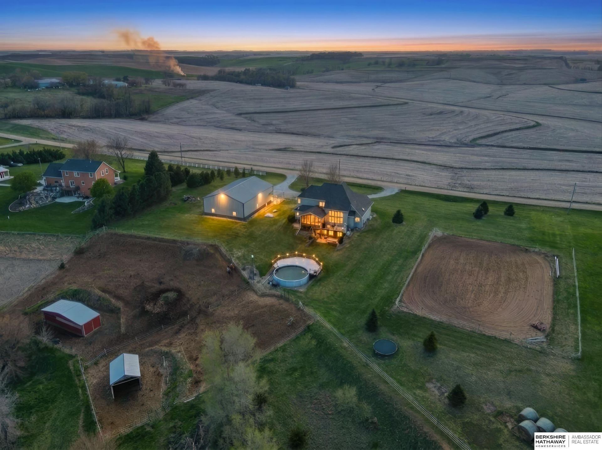 The acreage opportunity on 4.4 acres, this property is built for both lifestyle and function with a horse arena and a 40x60 insulated outbuilding ready for work or play. Inside, soaring 14-foot tin ceilings and a double-sided fireplace anchor the great room, complemented by rich oak hardwood floors throughout. The kitchen and living spaces flow effortlessly, while the primary suite offers a spa-like feel with dual shower heads and a clawfoot tub. Step outside to a cedar deck and elevated pool, perfectly positioned to take in the landscape. Geothermal keeps energy costs low, paired with a lifetime water heater, water softener, newer roof, and durable hardie siding. Just 30 minutes to Irvington with nearly all paved access, this is acreage living done right!